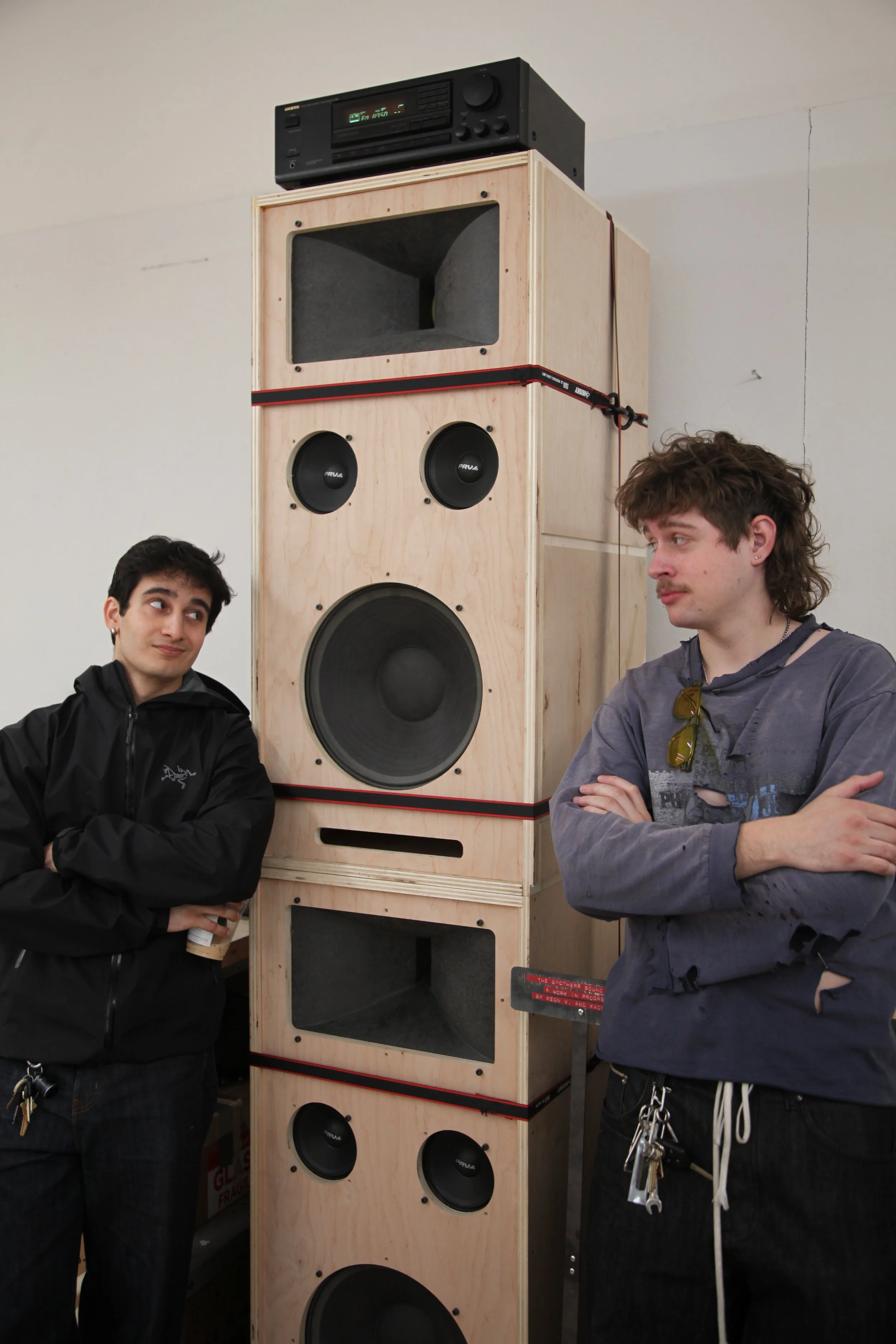 the Brothers Sound System is a full-range, freestanding dual-cabinet sound system built in collaboration between Kader Kayser and Keon Vafaee. Housed in a CNC-machined Baltic birch plywood enclosure, this work in progress delivers dynamic, high impact sound. It utilizes three internally mounted, separate enclosures for the tweeter horn, dual midrange array, and vented subwoofer.